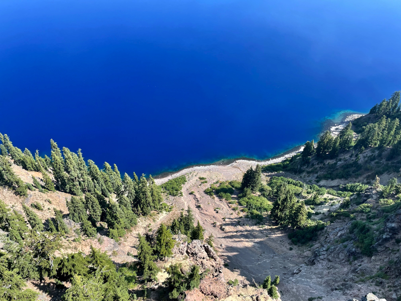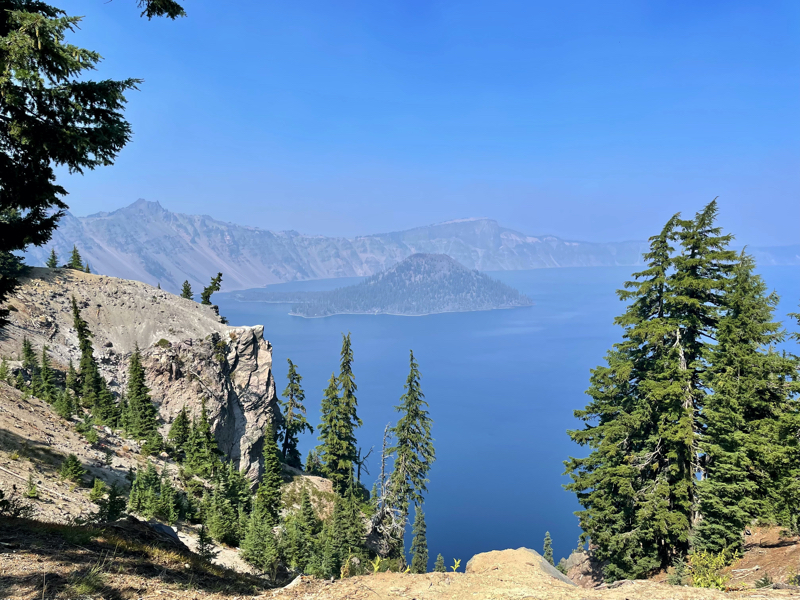 His latest trip was completely around the lake on a bike. Two weekends a year in the fall, Crater lake closes most of the road and allows bikes and hikers to use the road for travel. This was