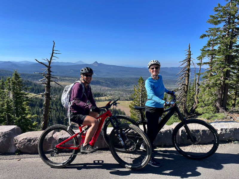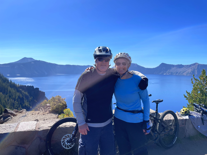 one of the most fun, exciting and scenic rides Tim has ever done. He, Monique and his friend Judy rode about 35 miles in a little less than four hours. They were using e-bikes, so they had plenty of time to stop and see the views of the lake from many different vantage points. Tim has taken drives and hikes around the lake with family and friends in the past, but traveling the route by bike was truly inspiring. The lake and the surrounding area are still as breath taking as he remembers from his childhood visits. Tim recommends that everyone plan to visit the Crater Lake National Park at least once in their lifetime. And remember, it's only about 2 hours from Tim's current place of residence, so feel free to contact Tim and invite yourself for a visit. There is always lodging available. Tim has enjoyed many trips to this national park, but making the trip on bike will be his fondest memory. He has committed to next year's ride already-maybe even 2 laps. Enjoy the latest photos and video from this most recent adventure.