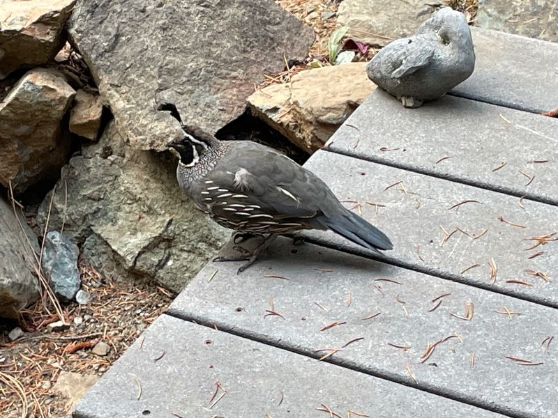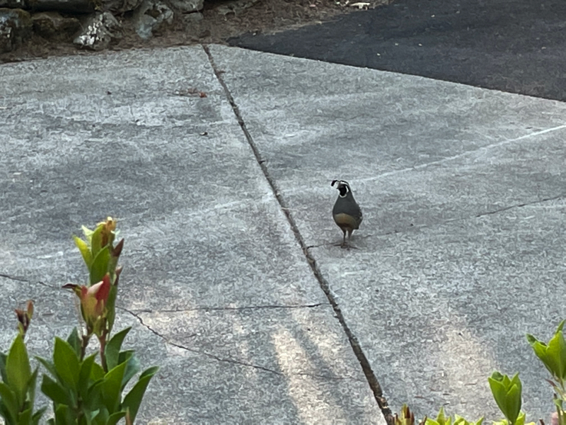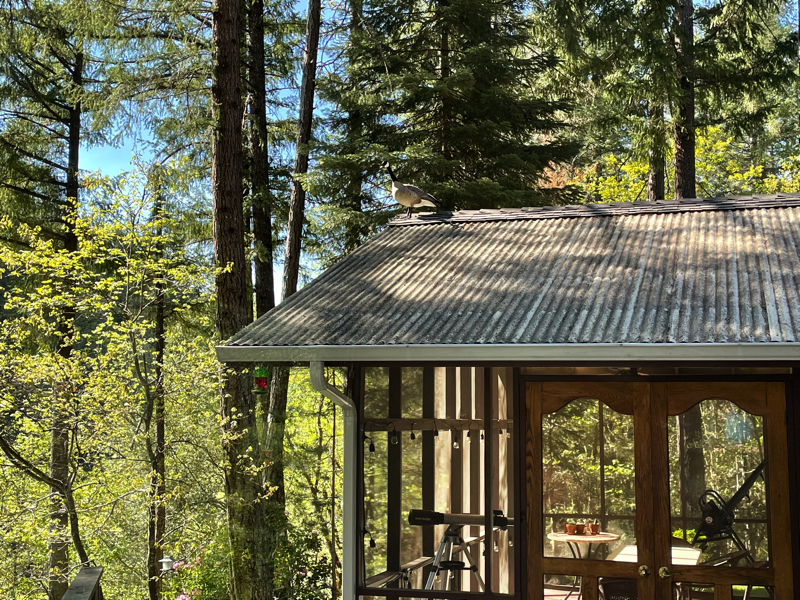 So far, some of the animals he has seen are Geese, Ducks, Deer, Quail, Snakes, Lizards, Skinks, Elk, Raccoons, Skunks (not to be confused with Blue-tailed Skinks, squirrels, Blue Jays, Wood Peckers and many other small birds and other animals. This doesn't even address insect life that surrounds. Here are some of the images of Tim's friends of the forest. Update: There has been a new visitor to the porch. Watch the video below to find out who stopped by.