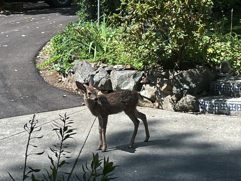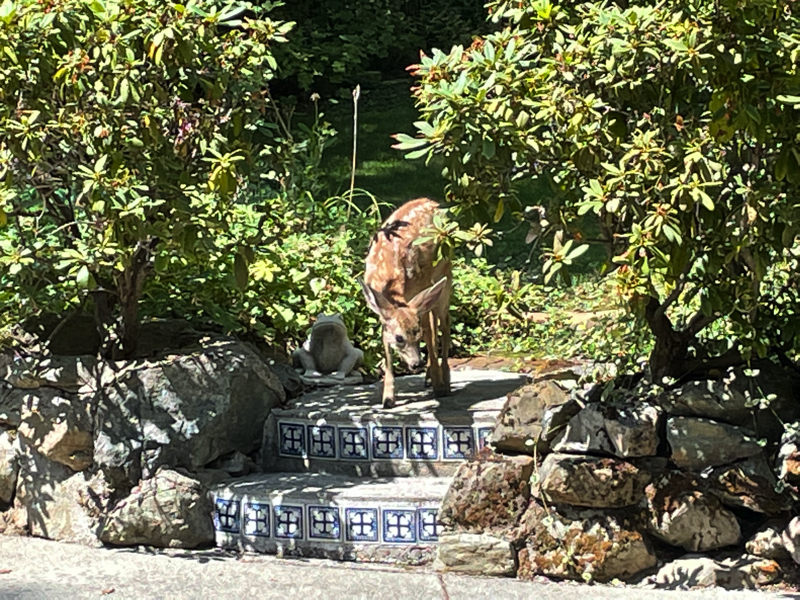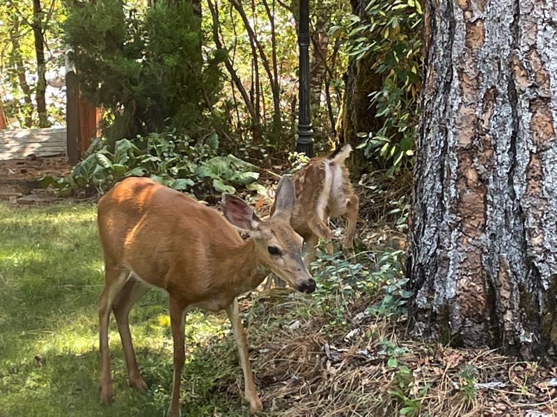 Tim shares his yards with many animals of the forest.