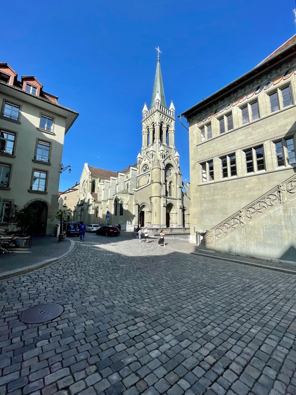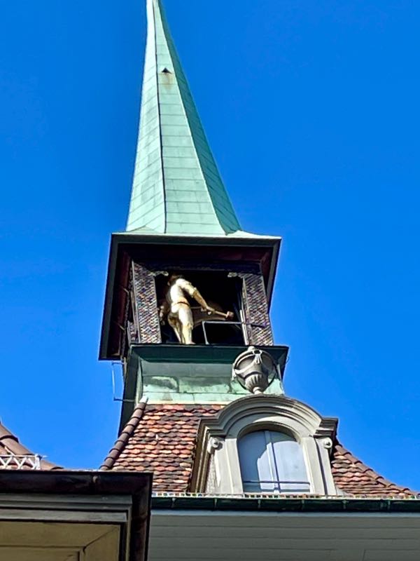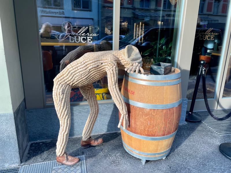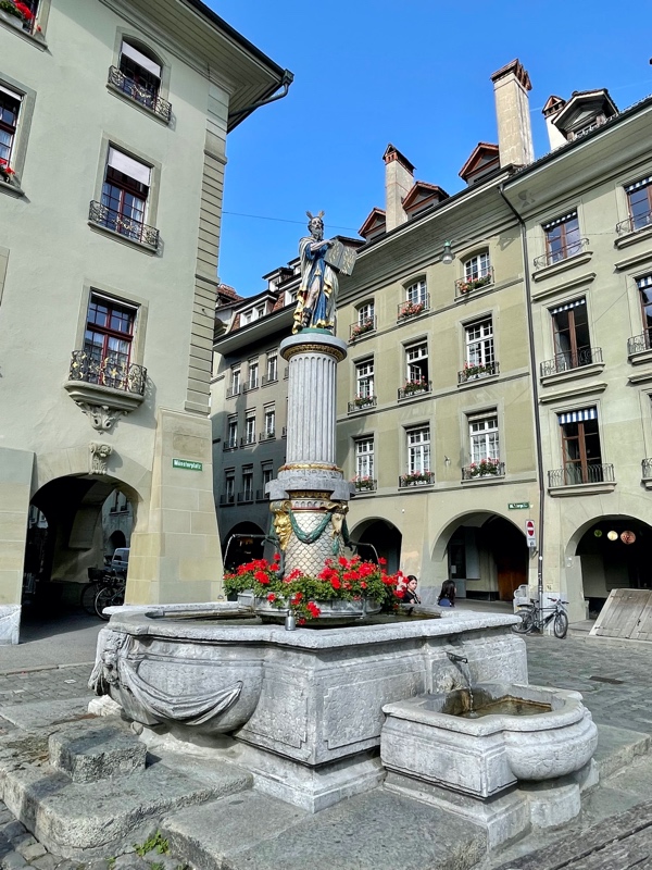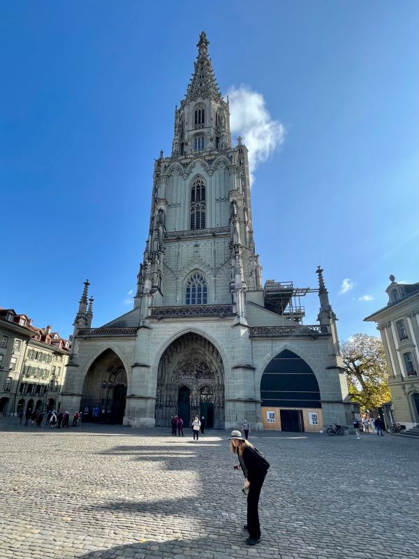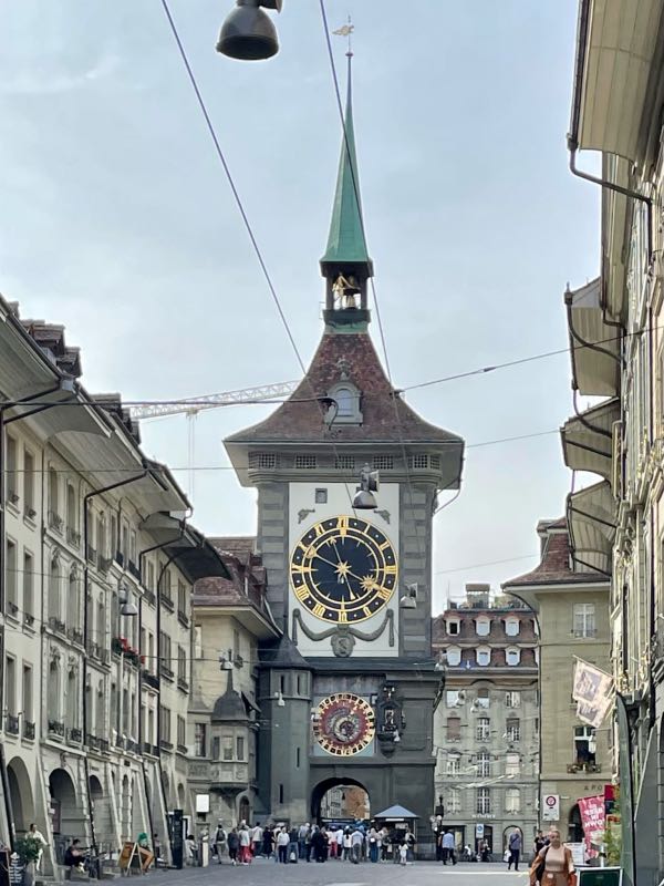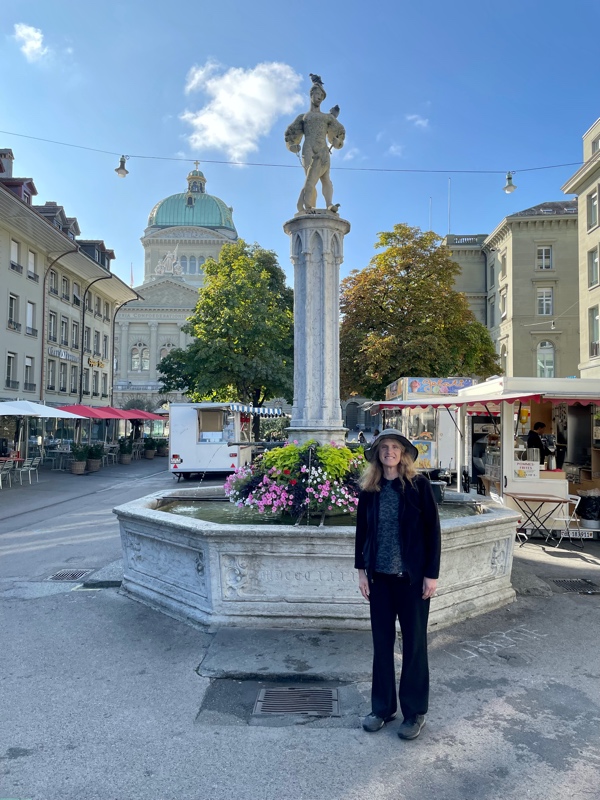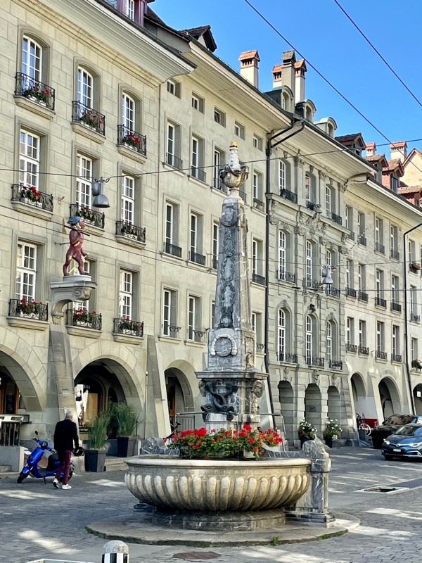 This was their first time washing clothes on the trip, but it would not be the last. As there were no laundromats in the old town of Bern, a fairly short bus ride took them to one of the more residential areas, where they then found a small laundromat (one of only a couple in the surrounding area that made for their first brown bag dinner spot. After that, the next couple of days were spent seeing the sights and experiencing the friendly and inviting capital of Switzerland. The clock at the center of town is the main attraction, and it puts on a small show each day for tourists to watch. The beauty of the region could be witnessed in every direction. Bern is also known for the many fountains in the downtown and a zoo-like bear pit that Tim & Monique skipped on this visit. Tim is not fond of seeing animals in cages. There is a funicular in the middle of town that goes back and forth from the University neighborhood at the bottom of the hill, where most of the city's residences are, to the top of the hill, where the new and old downtowns are. They used buses, trolleys, funiculars, trains, and of course their feet to visit many parts of the city, including the many beautiful parks that were exceptionally clean and well-maintained. They found Einstein's house and the pub that is below what is now the Einstein House Museum. On the last night in Bern, the couple had true Swiss cheese fondue with bread and small potatoes, served with a glass of local wine while dining outside in one of the many pedestrian-friendly streets in the old downtown. This leg would set the tone for Tim & Monique's time in Switzerland. A country that would prove to be very clean with friendly and happy people. It would be one of the more memorable parts of their adventure.
