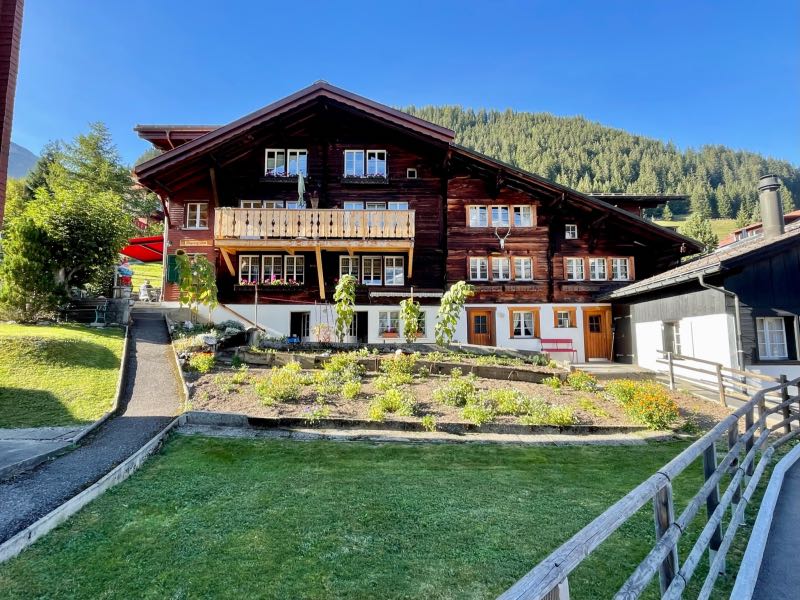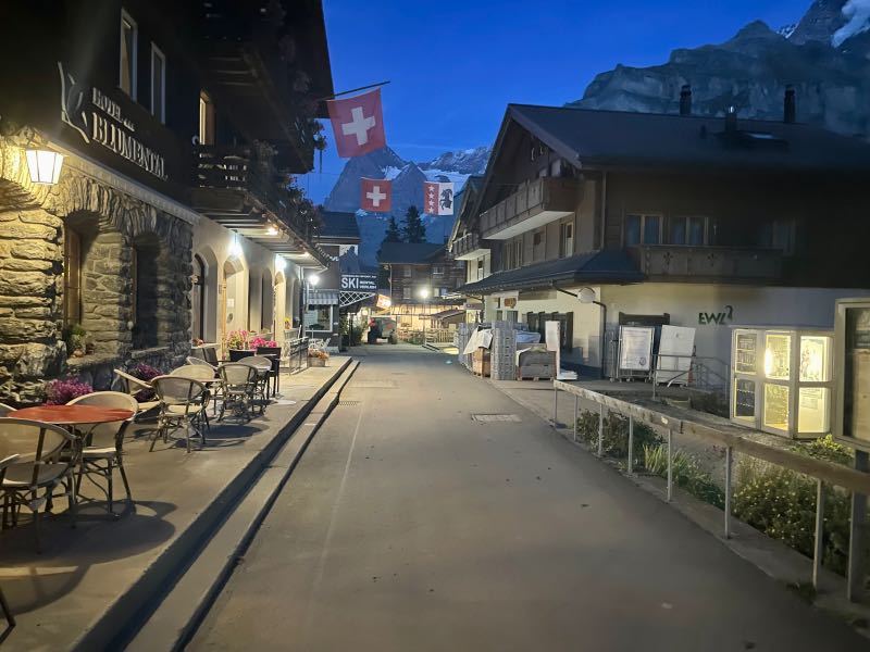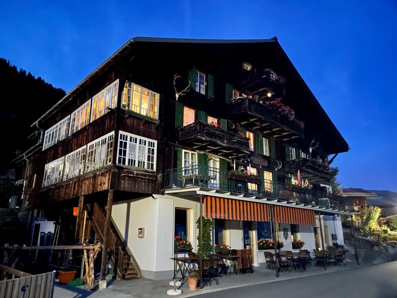 Their stay in the Alps started with settling into their room and enjoying a welcoming local beer from the kegerator tucked in behind the office. The rest of the day was spent exploring the town and taking in all the cabins, cottages, and wood shacks dotting the hillside, surrounded by massive mountains with incredible views in every direction. The first night was capped with a dinner at the adjacent hotel, which also overlooked the same mountain range and was set on the edge of the hillside. All in all, this was an incredible first day in the Swiss Alps. It would only get better...