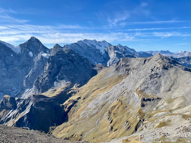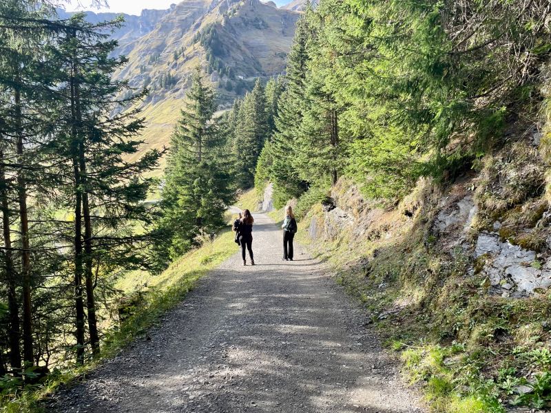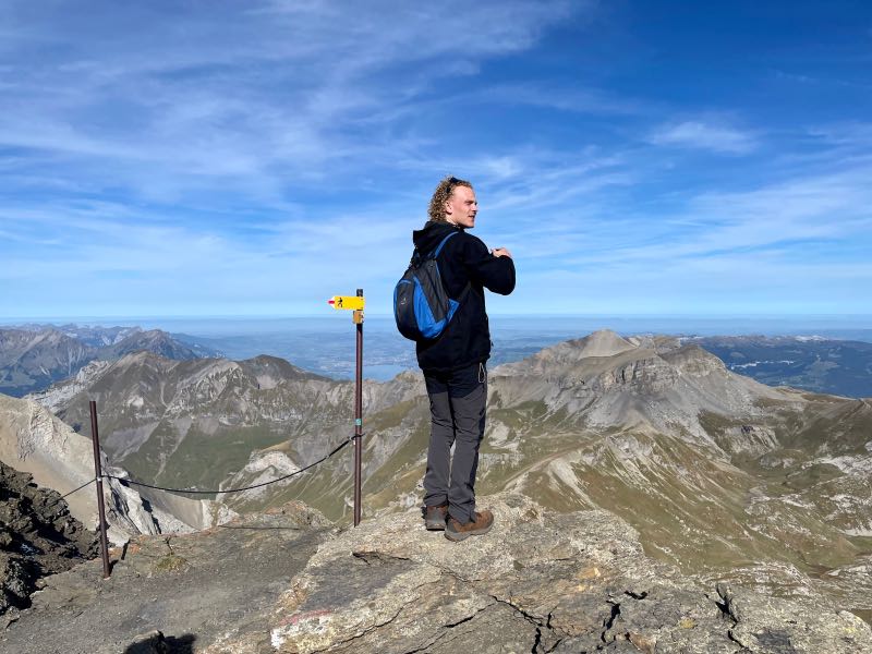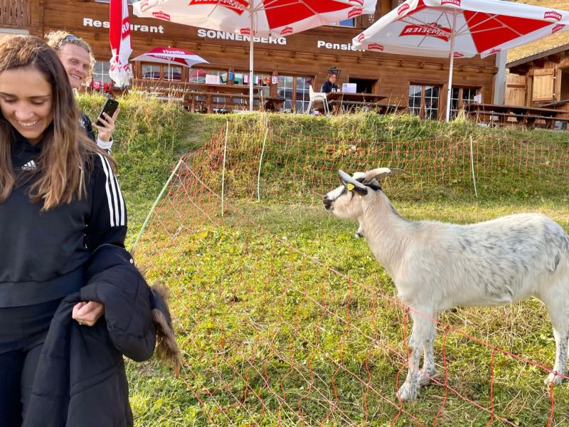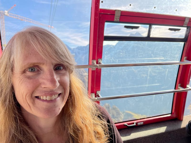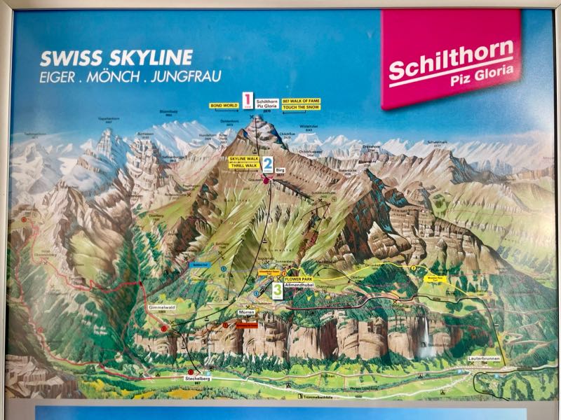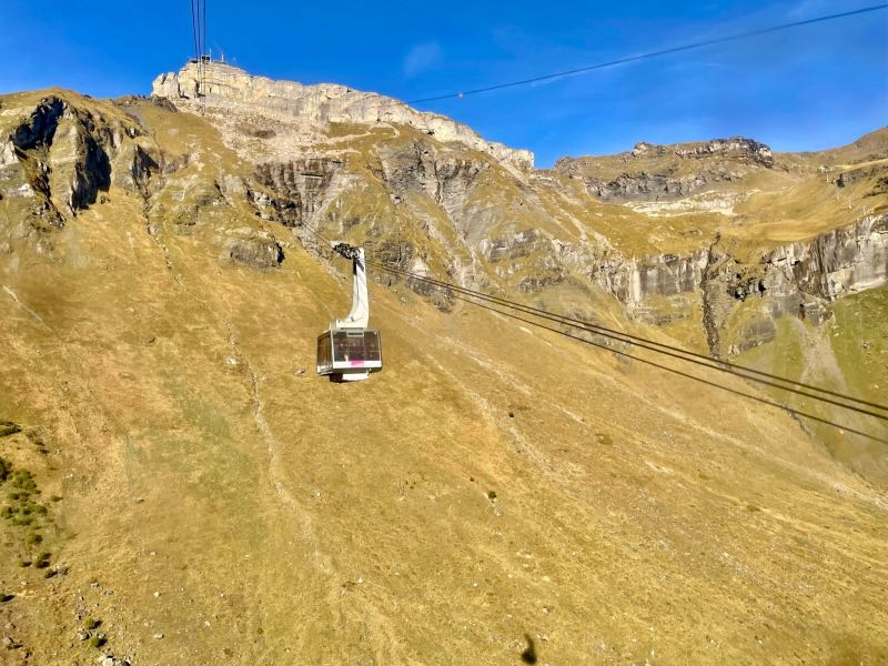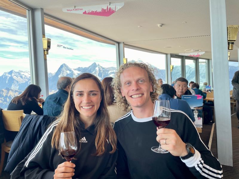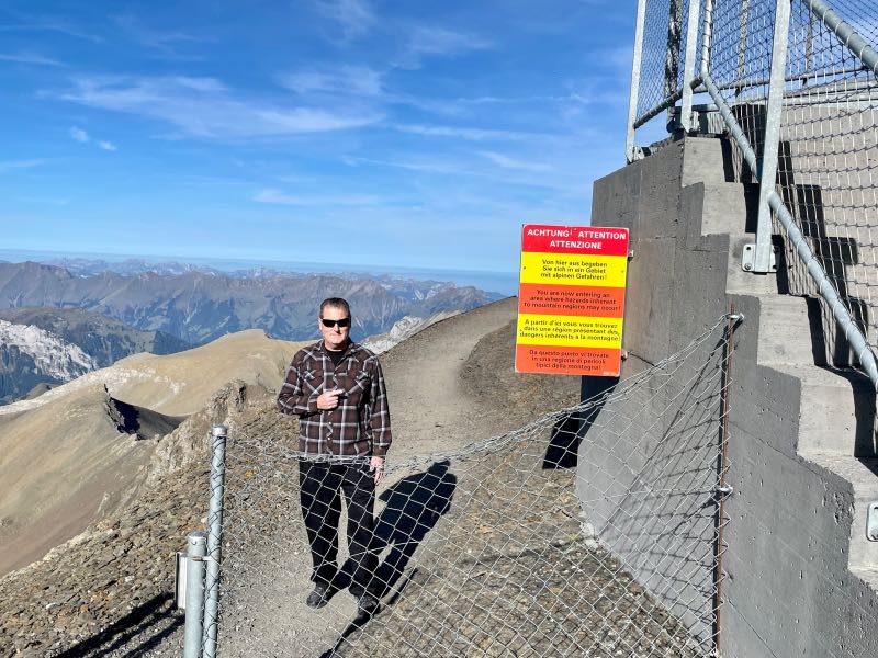 Tim offered to take a picture for another couple at the summit, and after, they reciprocated and took a few of Tim and Monique. The two couples spent much of the rest of the day exploring mountains and sharing a meal together in the 360-degree rotating restaurant at the top of the Schilthorn. It was one of their most pleasant surprises to meet other people on the trip who enjoyed exploring and hiking as Tim and Monique did. After both couples went their separate ways when lunch was finished, they made a loose agreement to try and meet up later for another hike that Tim & Monique had planned to do later in the day. On the way down the mountain at a stop in Berg, Monique became a bit more adventurous on the thrill walk, as seen in the videos below.
